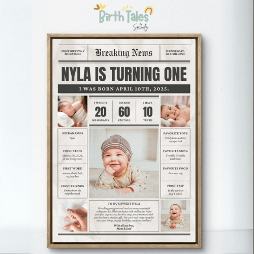 - Customizable with baby’s details (name, birthdate, stats & more!)